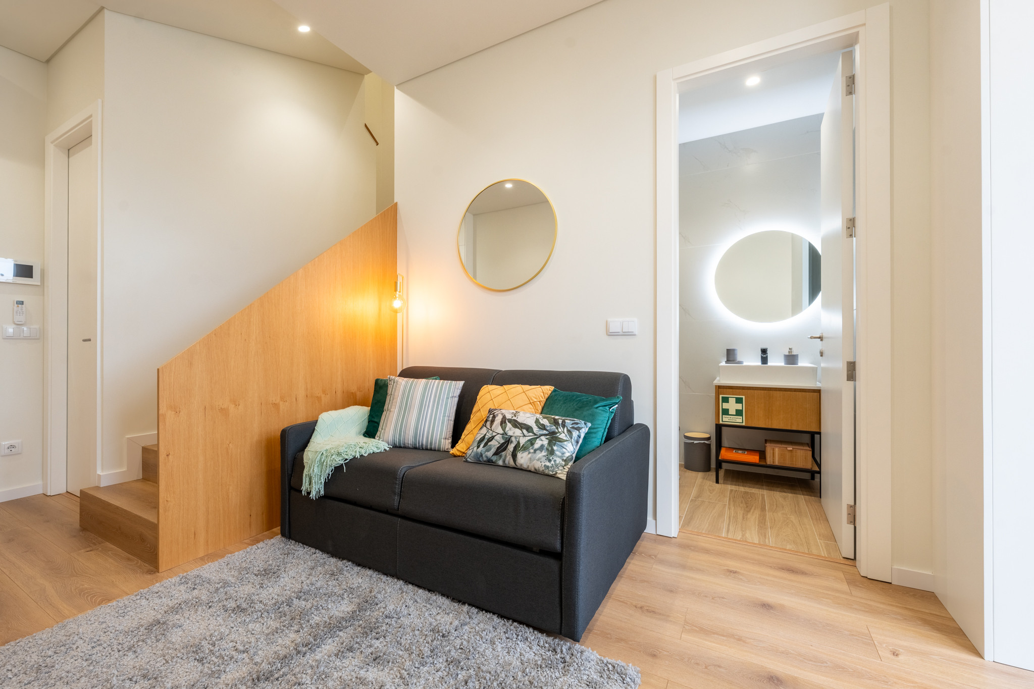 Situado no 1º andar, com acesso exclusivo por escadas, o apartamento está totalmente mobilado e equipado, sendo a escolha perfeita para casais que desejam aproveitar ao máximo o charme do centro histórico da cidade. Possui 1 quarto com cama de casal, Kitchenette com fogão, forno, torradeira, chaleira eléctrica, frigorífico com congelador e todos os utensílios de cozinha, máquina de lavar roupa, mesa de jantar para 4 pessoas, sala de estar com sofá cama, TV e Internet Wi-Fi, casa de banho completa com duche.